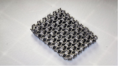 在实验中,团队利用该技术成功打印出由铁、银和铜构成的复杂数学晶格结构——旋面体。这种结构兼具高比强度和复杂几何特征,是航空航天和能源器件中理想的设计形态。测试结果显示,新材料可承受的压力是传统方法制备材料的20倍,收缩率仅为20%,远低于以往的60%—90%。